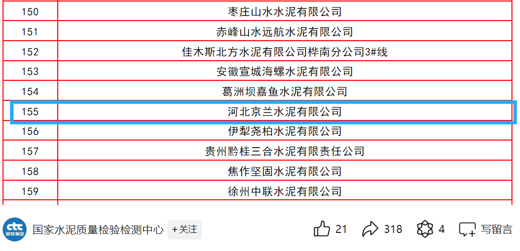 8月2日,備受矚目的“天寶華瑞杯”全國第十九次水泥化學(xué)分析大對比獲獎名單正式揭曉,在這場全國性的水泥行業(yè)質(zhì)量競技中,京蘭5家水泥公司均榮列榜單。